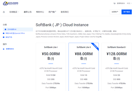ACClouds 产品价格表(日本 VPS)