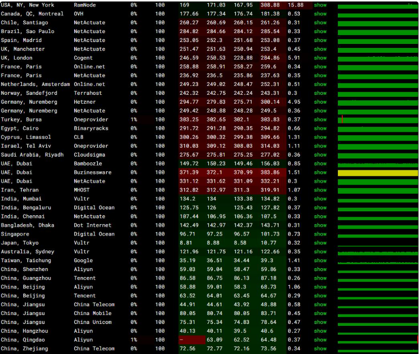 以下为从中国不同地区及不同网络(电信 / 联通 / 移动)到大阪 VPS 的延迟与稳定性测评数据: