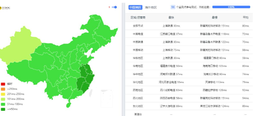 全国三网合并平均延迟约 80ms,电信与联通线路性能较好,移动相对稍差。整体网络稳定性评价较高。
