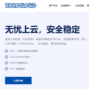zorocloud香港双程CN2 GIA云服务器RAID10数据安全